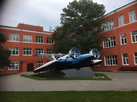 А потом прогулялись по всей Верхневолжской набережной, где что ни дом - то имя геройское! Например, судовладелец Сироткин, поспособствовавший бурному развитию пароходства и появлению Университета в Нижнем... Или династия Рукавишниковых, прославившихся не только торговлей железом и самым богатым особняком города, но и тем, что уже при нововй власти - Советов - поставили памятник другому герою города - Петру Нестерову! Ну, а уж о его мертвой петле знает всяк пилот! А еще подивились спрятанному во дворе Политехнического университета экраноплану Ростислава Алексеева, на котором тот гонял в Москву по воде как мы сейчас  по железке на Сапсане...
