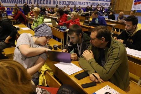 Первый предполетный спортивный брифинг 27-го Чемпионата России по воздухоплавательному спорту принял спорткомплекс "Стрелец" в 3:30 13 июня. Спортивная дирекция во главе с Александром Мавриным подготовила пять заданий. Первые два сразу привели в тонус измерительные команды. "Пицца", еще и с двойным сбросом на максимальном расстоянии. Центр креста по "прилету" (FIN) располагался в тех же координатах у деревни Фотьево. Кстати, судейский брифинг по этой же причине был смещен на полчаса и состоялся в 2:30.