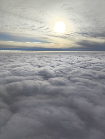 Облачность начиналась на уровне, примерно, трёхсот метров и четыре "яблока" быстро превращались в ёжиков в тумане. Естественно, что в таких условиях взлет осуществлялся с интервалами. Особо настойчивым удалось увидеть полуденное зимнее Солнце.