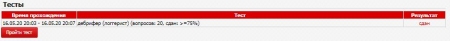 Из предложенного списка можете выбрать необходимый тест. Тут же мы видим количество вопросов в тесте. Тест считается сданным, если Вы дали верные ответы не менее, чем на 75% вопросов в тесте (исключение – тесты по семинарам).