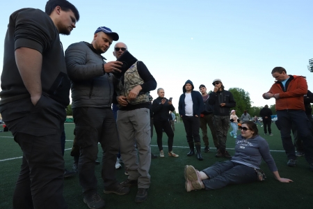22 мая, вечер. Колонна аэронавтов выдвинулась в сторону стадиона «Строитель» города Клин.