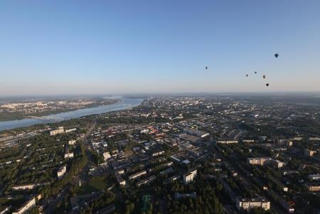 Утро 3 августа встретило теплом и слабым ветром вдоль Волги. Воздушные путешественники пролетели практически весь город, наслаждаясь прекрасными видами.