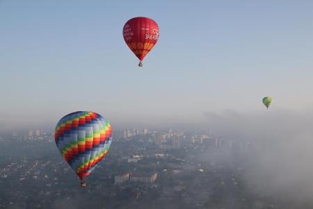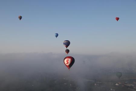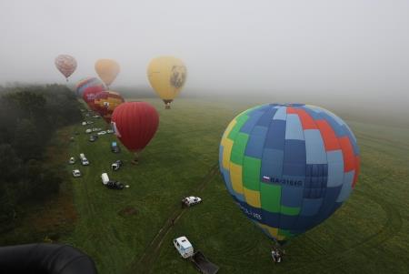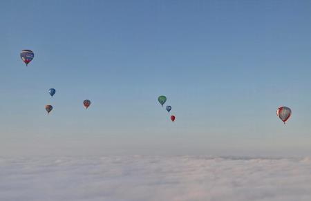 Во время полёта, как и обещала ранее метеослужба аэропорта, облака распались и аэростаты приземлились уже на солнечный цветущий лужок на Кстовском выезде. Пассажирам аэростатов, как , впрочем, и бывалым воздухоплавателям, утро показалось сказочным: кисельные берега - молочные реки... Некоторые даже решили, в ожидании машины сопровождения, попастись на лугу подольше...