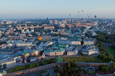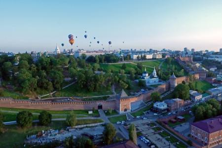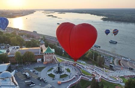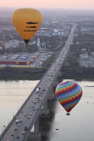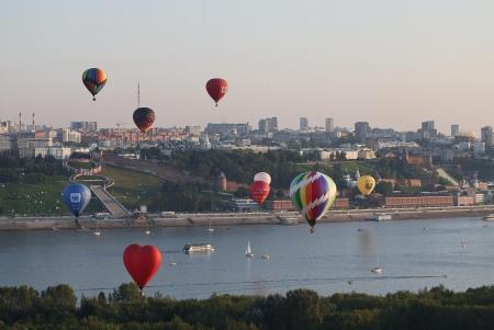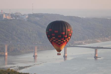 Пройдя над Нижегородским кремлем и изучив все архитектурные ансамбли исторического центра, фиеста двинулась по руслу Оки. Плыть по воздуху против течения необычайно интересно: ветра на различных высотах меняют направления, изгибы реки и высота берегов вносят свои коррективы. Пилоты внимательно следят за линиями электропередач и показателями приборов... А так хочется просто крутить головой по сторонам и дивиться красотами Дятловых гор, окскими просторами и новыми, выросшими словно грибы за пару десятков лет, микрорайонами...