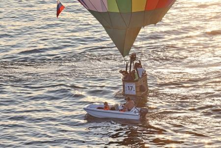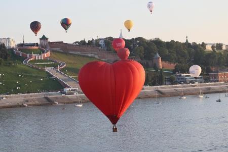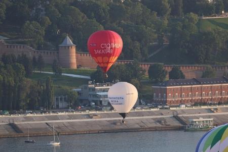 Наконец, старт был дан, и 20 аэростатов один за другим поднялись с полей и поплыли неспешно через матушку Волгу прямо на Чкаловскую лестницу и Кремль. С воды аэростаты сопровождали лодки, яхты и водные мотоциклы. С воздуха назойливо юлил мотопараплан. Баржи неторопливо шли своим ходом... Зрители с набережных приветствовали фиесту улыбками...