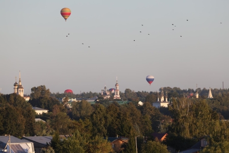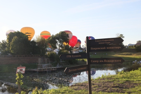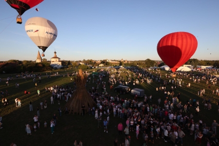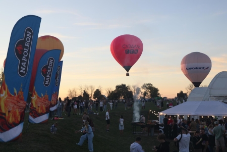 Днём 7 сентября на территории ГТК Суздаль развернулась ярмарка поварских талантов. Много дыма и запахов съестного. Участники Фестиваля сначала провели водные процедуры, а потом уже дегустация. Несмотря на нашествие пищеманов, аэронавты ровно в 16 часов провели предполётный брифинг. Опять большая часть улетела в свободный полёт, а на поле остались самые крепкие, им повезло работать на привязи. С погодой опять всё хорошо.