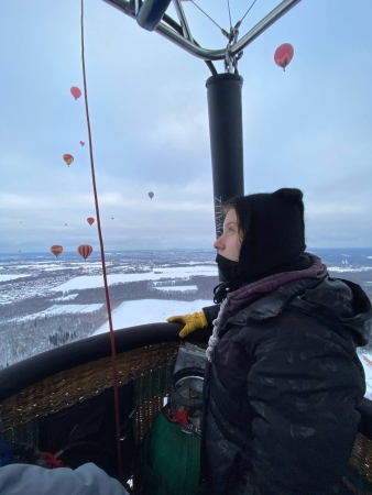 С каждым полётом я всё больше понимала команды и советы инструктора, действия становились слаженней, росла уверенность в себе. Во время лётной практики мне даже посчастливилось принять непосредственное участие в фестивале «Яблоки на снегу». Такой яркий и массовый старт в толпе из 40-ка аэростатов - лучшие воспоминания.![]()
