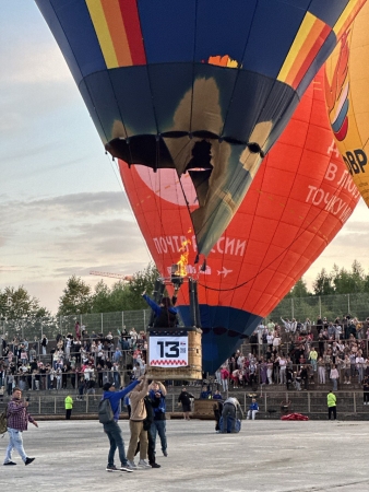 Но зрители, конечно, ждали красочного зрелища и фиесты над городом закатов. Поэтому полет открытия воздухоплаватели проводили красиво — массовым стартом со стадиона "Труд" в центре рабочего Сормова!